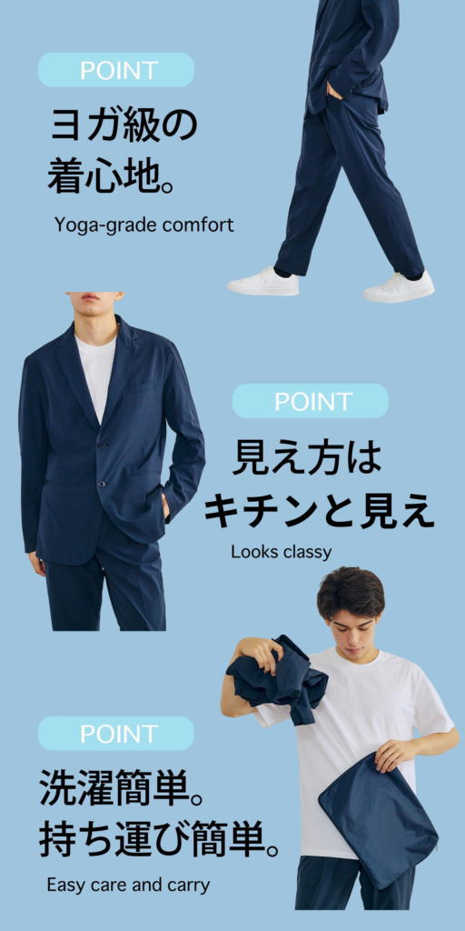 「スーツの“着るストレス”、品よくスマートに解決しませんか?」